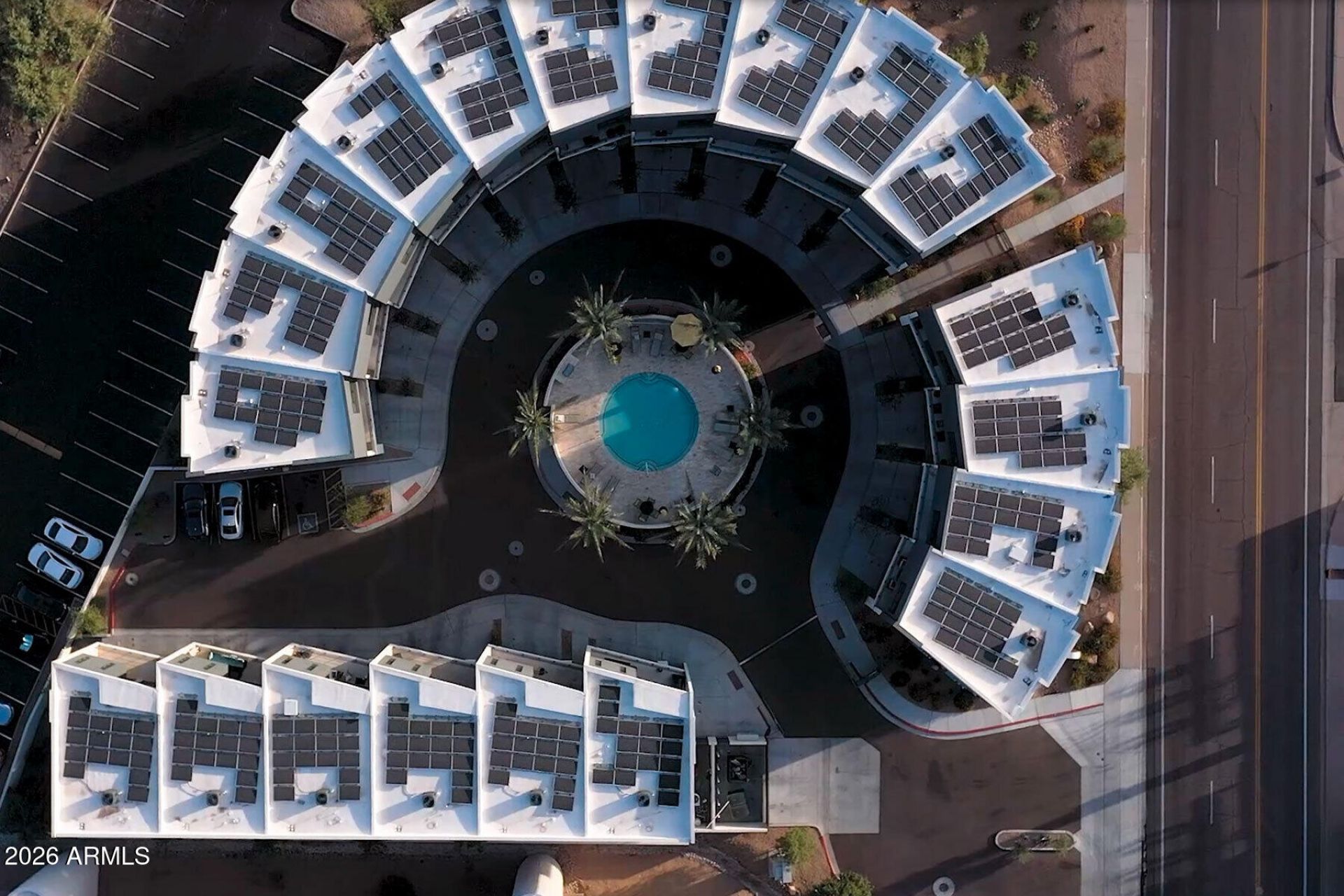 Circle Lofts is a limited collection of just 20 architecturally striking townhomes designed around a bold and unexpected idea: community as art. Homes are oriented along a graceful arch that embraces the central pool, creating intentional view corridors and a connection to the heart of the community.Three private bedroom suites, one on each level provide comfort and separation, the lower bedroom accesses a private yard. Soaring 2 story ceilings showcase livable luxury with floating staircases, unexpected angles, expansive multi-slide doors, and carefully curated finishes. A secure gated entry and owned solar complete a community that is as thoughtful as it is visually compelling. Circle Lofts is not just a place to live--its a statement
