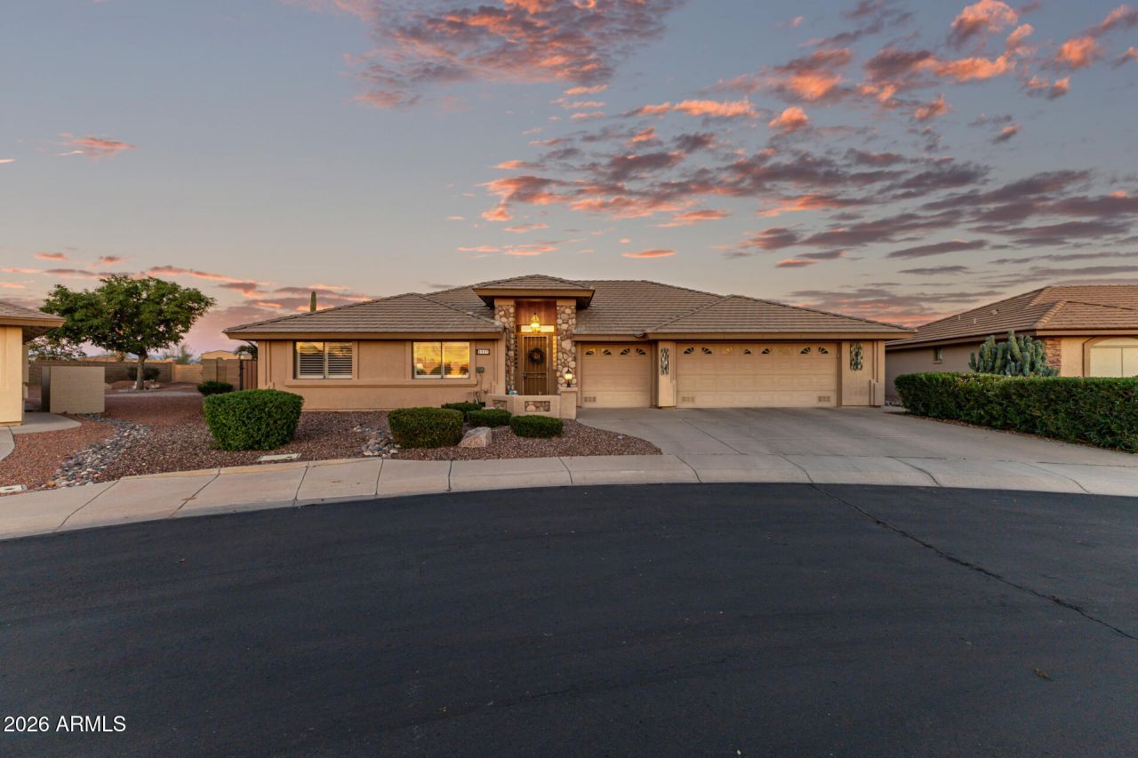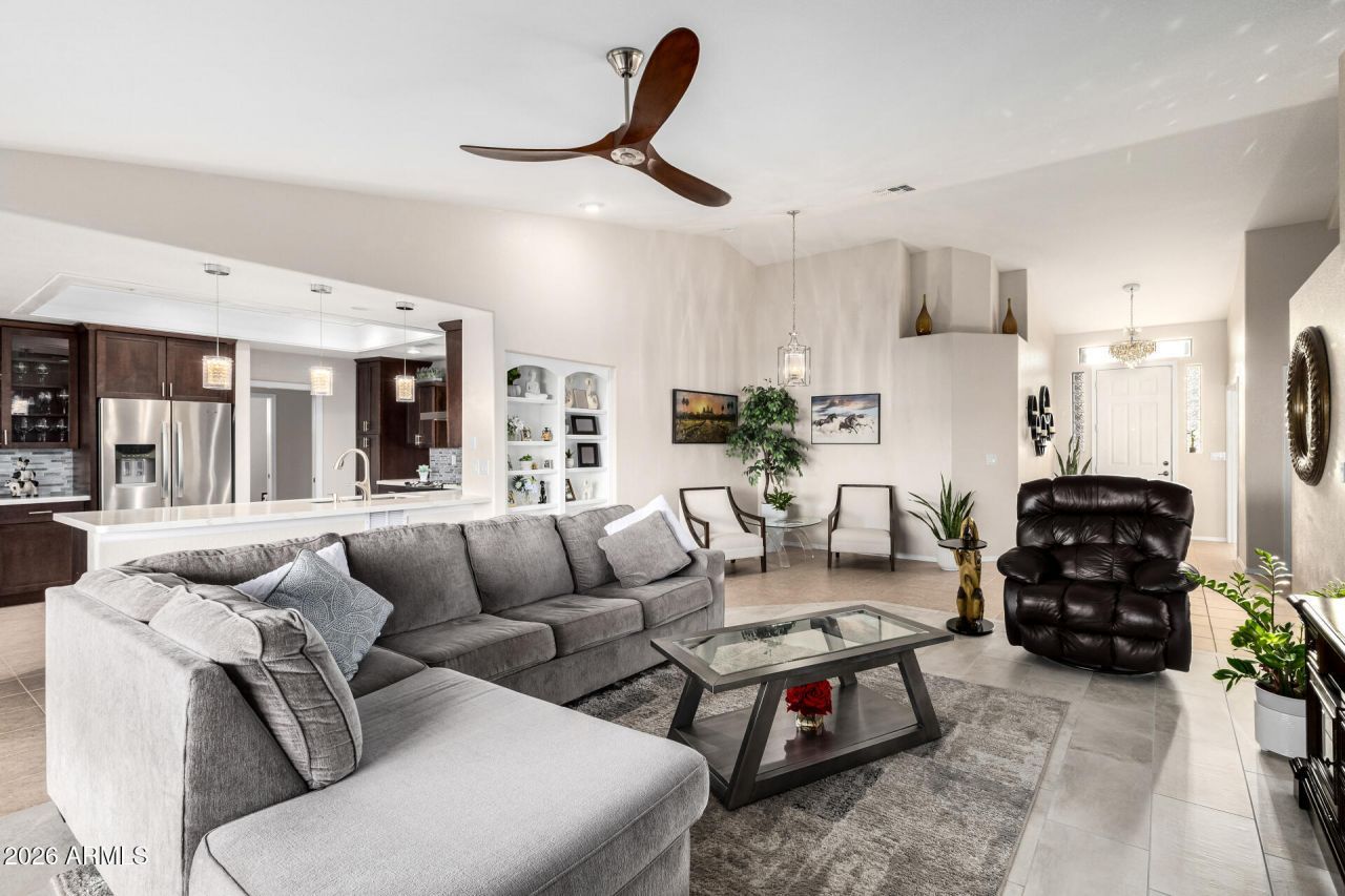 You dont want to miss this stunning 3-bedroom home in the popular Sunland Springs Village! Great curb appeal, featuring a beautiful stone-accented facade, a manicured landscape, with a 3 car garage also with attached storage. Inside, youll find a perfect blend of style and comfort, showcasing tile floors, soaring vaulted ceilings promoting an airy feel, delightful light fixtures, plantation shutters for classic charm, a fireplace to add warmth, and neutral colors. The chefs kitchen is complete with mocha cabinets adorned with crown molding, tile backsplash, quartz counters, and built-in appliances. Get a good nights rest in the serene main bedroom, showcasing a double tray ceiling, a bay window, a walk-in closet, and a bathroom with dual sinks. Enjoy peaceful evenings in the backyard, including a covered patio perfect for weekend grills and plenty of space for entertaining. Hurry up, this gem wont last!